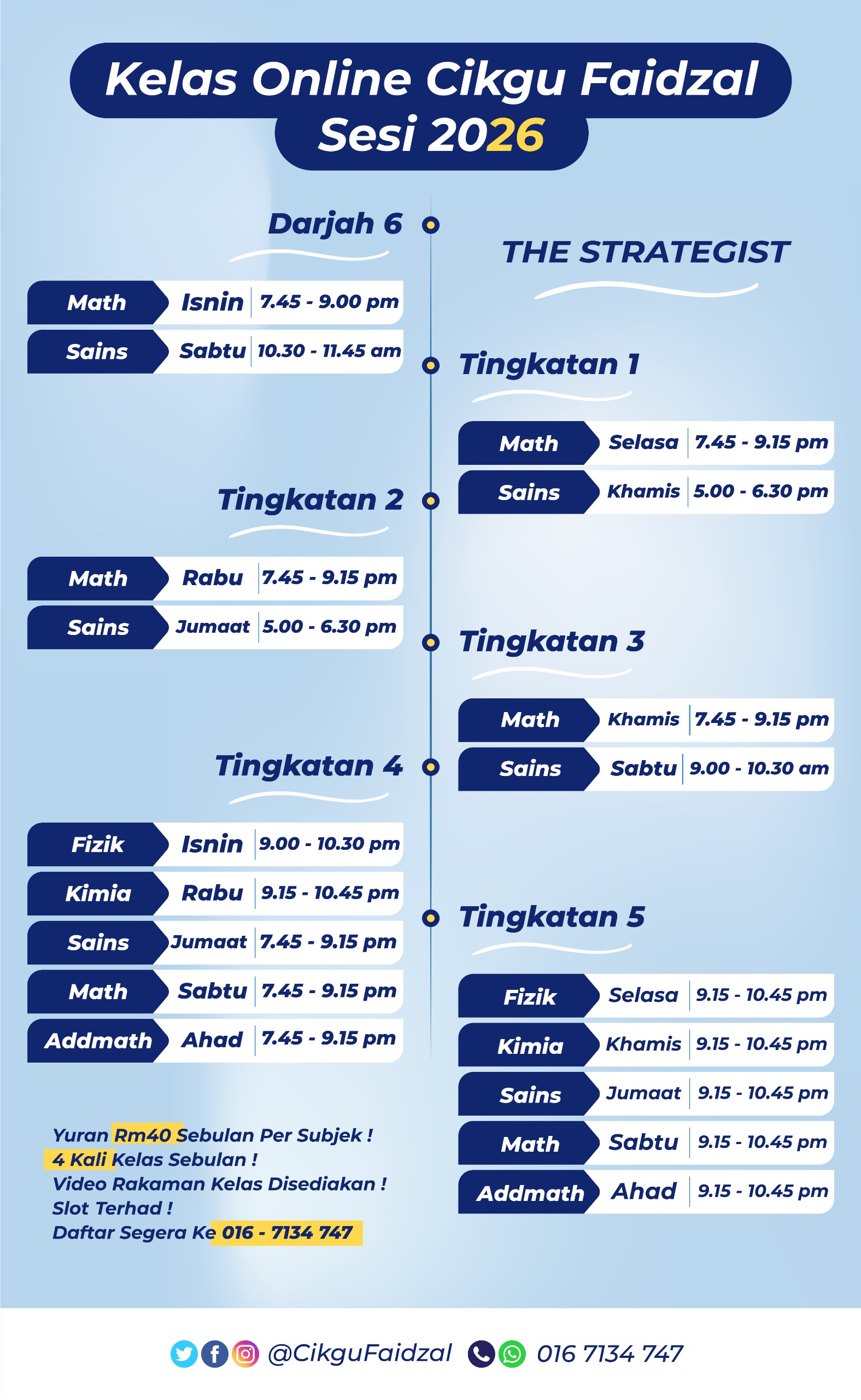 **TIADA SEBARANG REFUND DIBUAT SELEPAS PEMBAYARAN. SEGALA KEPUTUSAN DAFTAR TUITION KELAS CIKGU FAIDZAL ADALAH KEPUTUSAN TUAN PUAN SENDIRI DAN TIADA PAKSAAN**